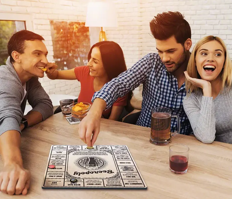 Fun is brewing across the board with this hopped-up drinking game. Perfect for parties or just to start the weekend right, Beeropoly invites players to quaff their way through a series of beer challenges – from a rhyming competition to demonstrating their best dance moves. Players take turns rolling the dice and moving their bottle cap around the handsome pine wood board. They complete beer challenges along the way and risk elimination. The last woman or man standing must drink the community cup…Cheers! For 1-99 players. 30 minutes. Ages 19+